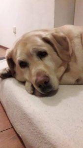 27.3.19 Terka je pravděodobně kříženka labradora. Je jí cca 8 let. Páníček je po infarktu v LDN. Fenka slyší na jméno Terka, Terezka, Terry. Je naprosto nekonfliktní a se vším a všemi snášenlivá. Po příchodu z práce vítací, hravá.