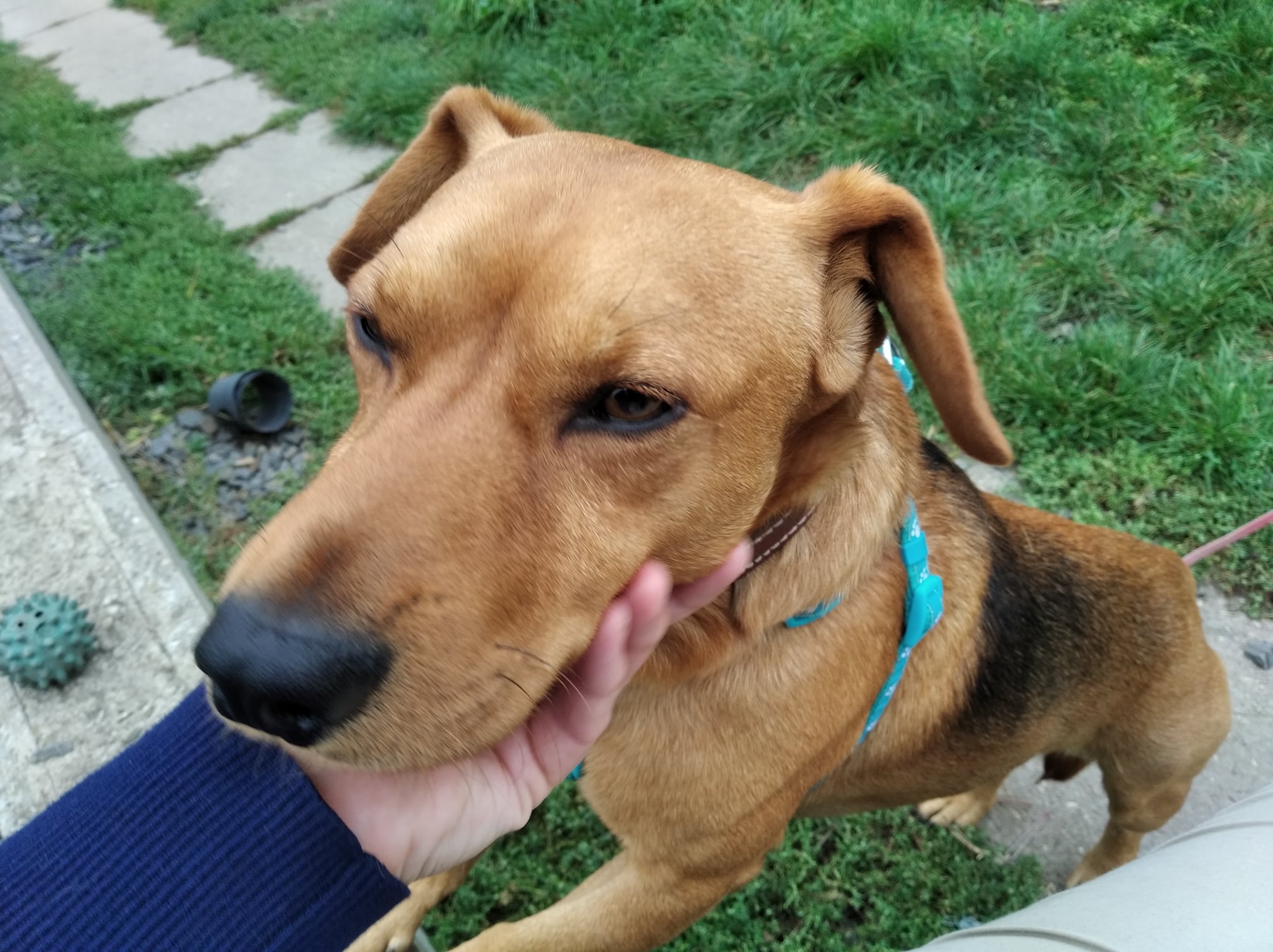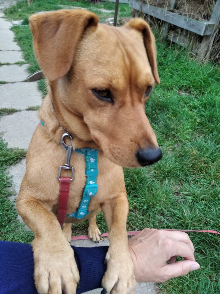 Áďa se pohyboval několik dní u silnice za Rokycany. Stále se na silnici vracel, nedal se odchytit, až ho ve středu 16.9. MP uspala foukačkou a včera přijel k nám. Je to malý pes, věk tak 2-4 roky. Zpočátku plachý, po seznámení s lidmi kamarád, na psy se zatím moc netváří. Nemá čip a nebyl ani jinak označen. Na levé přední pacce mu chybí dva prstíky.