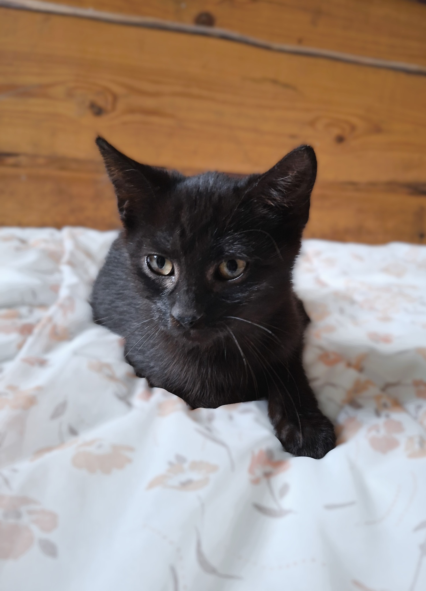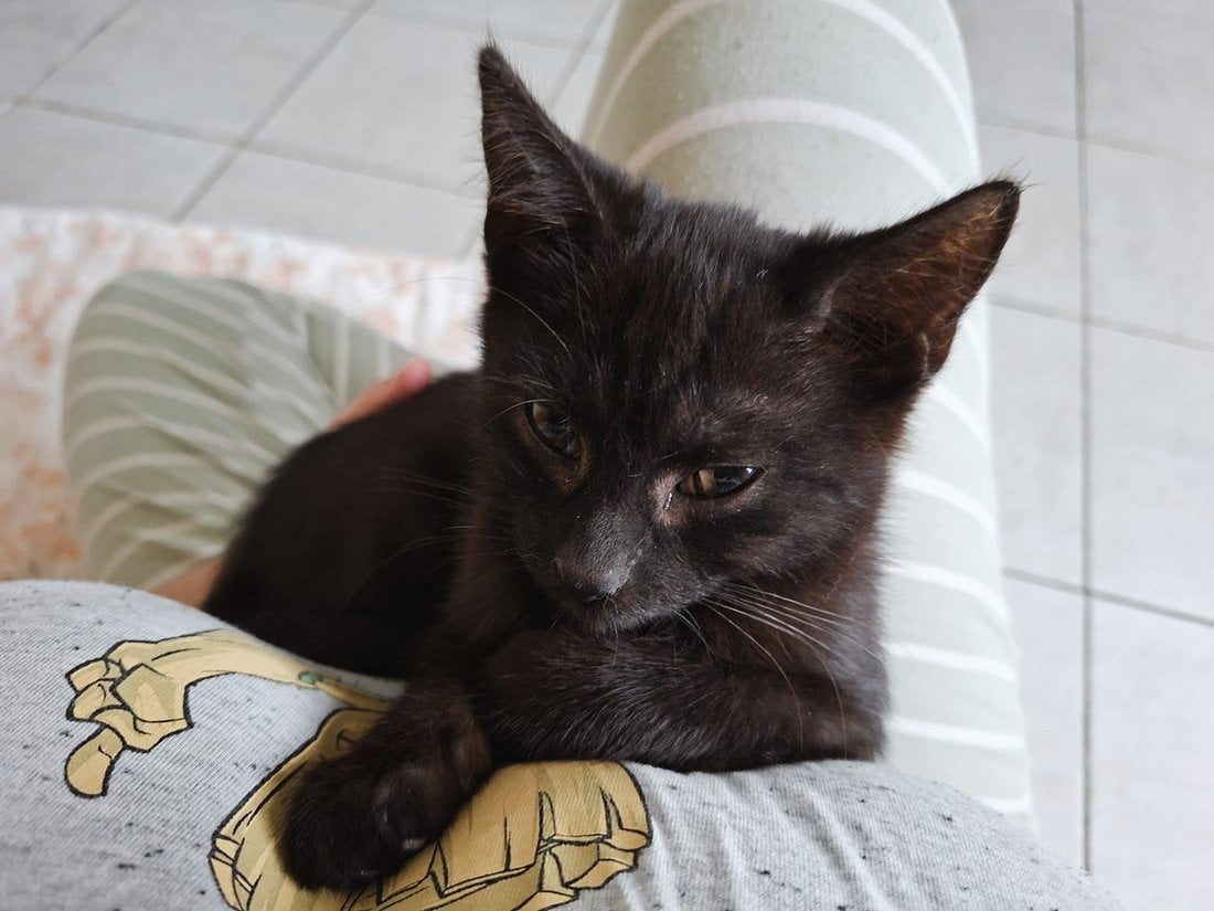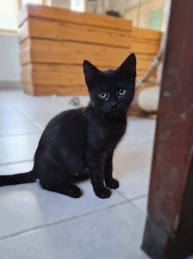Cipísek je černý kocourek, ze 6 bráchů je nejmenší, ale energie má za všech 7 koťat. Od samého začátku miluje lidi, mazlení s nimi. Sedne si na rameno a má rozhled. A jak se zamilovaně podívá do očí, nejde ho nemazlit.