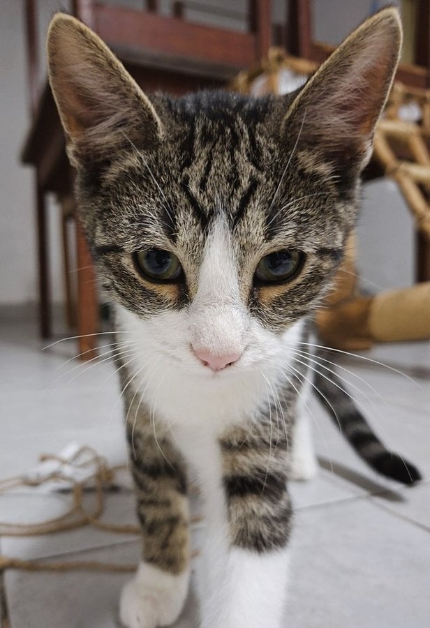 Mourka jsme přijali 30.8.2025 z chatové oblasti Krámy spolu s dalšími šesti koťátky (6 kluků a 1 holčička).