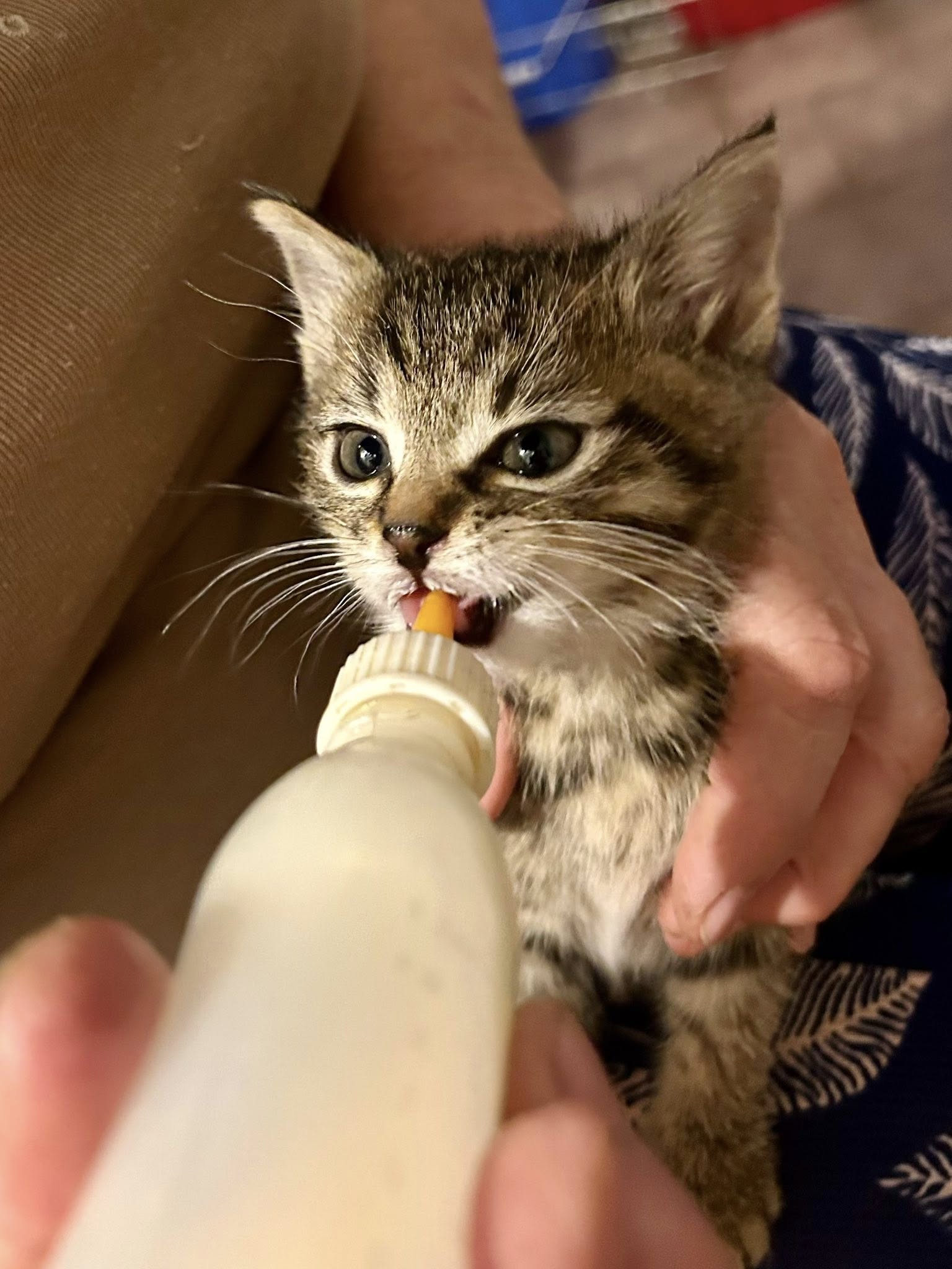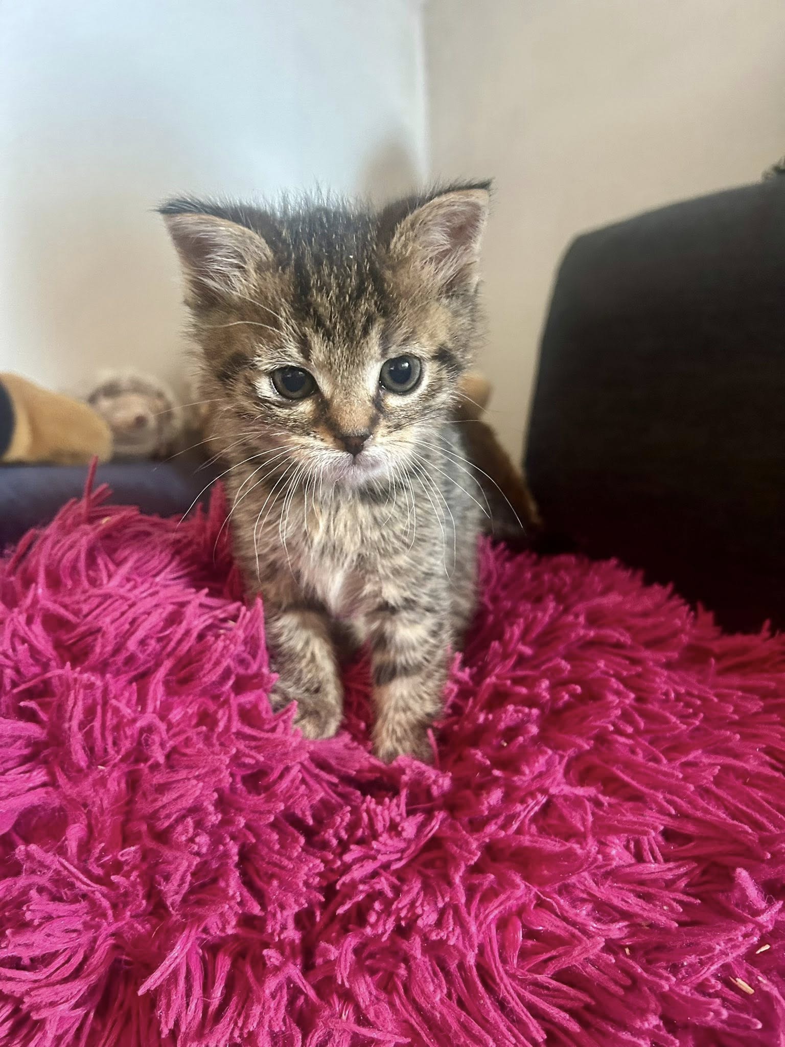 Simba je 5-6 týdnů staré koťátko. Při příjmu byl silně nastydlý, dehydrovaný. Druhý den návštěva veterináře, dostal ATB. Je dokrmován.
