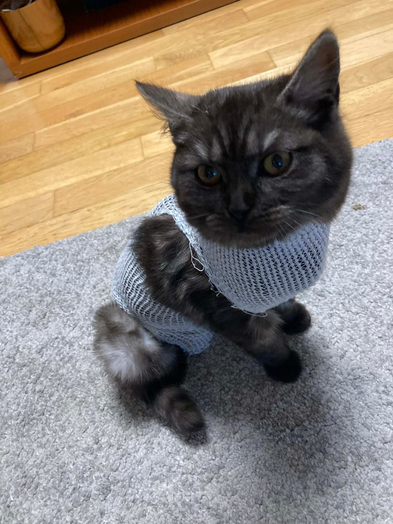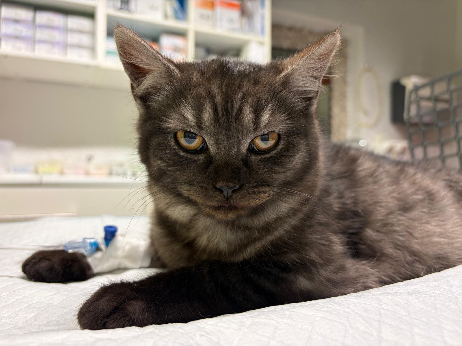 Náročný zákrok zvládl a zůstal pár dní na hospitalizaci. Mezitím se ozvala paní majitelka. Moc se zajímala o jeho stav, byla ze všeho velmi špatná, bohužel nebylo v jejích možnostech uhradit výši veterinárních výdajů a hlavně do budoucna nemohla zajistit, že by byl pouze uvnitř. Proto jsme se dohodli, že Matýsek zůstane u nás a pokud vše zvládne, budeme mu hledat domov pouze v bytových podmínkách. Jeho zranění se špatně hojilo a po pár dnech musel opět na operační stůl. Nyní klepeme a doufáme, že už má nejhorší za sebou a už bude jen dobře. Držte Matýskovi pěsti. Veterinární výdaje zatím vyskočily na 35.782,- Kč.